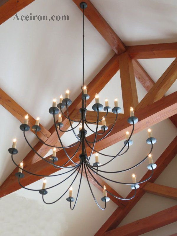 Custom Plain Large Wrought Iron Chandelier 60 Inch Dia., 3 Tier, 24 Arm