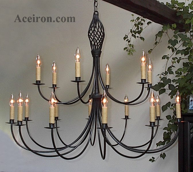 Ace Wrought Iron Custom 2 Tier 41 Inch Dia. Twisted Basket Chandelier