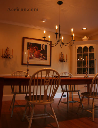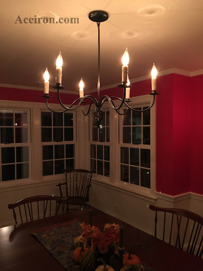 I have personally designed, HAND-FORGED, dated and signed, each Ace Wrought Iron Chandelier at my home blacksmith shop in Thorndike, Maine.
